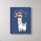 Cool Llama in Santa Hat with Snowflakes Christmas Canvas Print