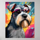It's a Miniature Schnauzer wearing glasses. How cool is that? It's pretty cool. My dog Calypso posed for the photo that I used to paint this. I added the glasses. Schnauzer moms and dads know they aren't sitting still with glasses on for more than half a second.