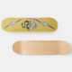 Get ready for the skate park and bring your board with this gold background and a silver blue dragons with blue lightning bolts on the top and bottom of the board.