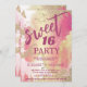 Adorable blush watercolor wash glittery Sweet 16 invitation.