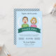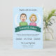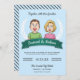 Amaze your guests with this cool wedding invitation featuring a happy couple with modern typography against a light blue background. Simply add your event details on this easy-to-use template to make it a one-of-a-kind invitation. Flip the card over to reveal an elegant stripes pattern on the back of the card.
