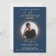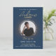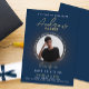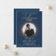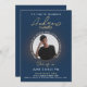It's time to celebrate your graduation and invite your guests to a party with this modern photo invitation. On the front there is a minimalist design with a fake gold and white modern script and a customisable photo on a dark navy blue background. The back is with the same simple, stylish blue background. You can change the photo and the texts and make a personalised invitation.
