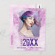 Cool, modern grunge style, photo graduation announcement postcards in shades of pink and purple. This unique, custom design features your personal photo, name, graduation year and high school, college or university name painted on a distressed style wall.
