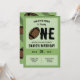 Introducing the Cool Modern Little Rookie Football 1st Birthday Invitation. This vibrant invitation combines a modern aesthetic with an American football theme. The green colour scheme signifies energy and growth, while playful typography adds a youthful charm. Featuring a prominent football image, it sets the tone for a sports-centric celebration. Subtle patterns and graphics enhance the visual appeal, capturing the excitement of the theme. Important details like the date, time, and location are clearly displayed, accompanied by catchy taglines. This invitation is perfect for parents seeking a stylish and contemporary design for their child's football-themed first birthday party, promising an unforgettable event.