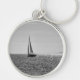 View of sailing boat near Istanbul. Sun light shines on sea surface. Cool, modern, black and white photography of summer concept.