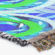 A quality printed throw has its advantages. This is a much finer weave throw than its loopier cousins, and though lighter, it is worth the investment for custom room accessorizing. The back is much prettier than the typical brown, and the fringe on the long sides very vivid, the selvage nicely done. Before photographing, I washed the throw in cold water, delicate, with a thicker woven throw the same size. On tumble dry low, this throw was dry in half the time as the other. This is a very practical quality if you use throws for furniture covers or to wrap up in frequently. The sleekness of the fabric makes it a great layer for accenting or protecting without the feeling of sitting on too much stuff. Perfect for napping or when you feel a light chill coming on. The color printing is beautiful and on this fabric, matched the design and color of my Photoshop image. This is an advantage for blending room fabrics and colors. The fringe on the short sides prints the colors from the design image and therefore varies from the side fringe. I streaked a white fractal line through the plaid pattern to give the illusion of weaving. This printed as crisp as an illusory thread, and put some white in the short side fringe, showing another advantage of print vs loomed- for artistic purposes, line lines, detail, and color integrity can be planned and preserved. My loomed throws have color limitations and more of a needlepoint texture. Print throws reproduce an exact image. The throw felt a little stiff straight out of the package, but this went away in the first delicate wash. Of course I searched the wash water for ink or bleeding and there was none.