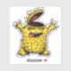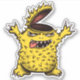 Cool monster sticker with a crazy brainless character illustration drawn in digital ink in yellow and blue green colours.