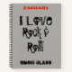 I Love Rock, Music Class with cool red and black text on a grey background with skulls in place of the letters o. Personalise with your own details with your Name, School Class Subject Name, etc. Fun for school, music class or just drawing or note-jotting. Designed by TamiraZDesigns.