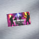 Coolest band for hire business card magnets created with cool style lettering and graphic of colorful band silhouette in the background in this two side musician business card template.