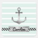 Cool Nautical Mint Stripes Anchor Personalised Square Sticker