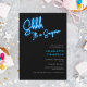 Shhh it's a surprise! Cool neon blue script retro black photo Sweet 16 neon birthday invitation.