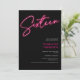 Cool neon pink script retro black photo Sweet 16 Invitation