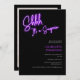 Shhh it's a surprise! Cool neon purple script retro black photo Sweet 16 neon birthday invitation.