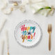 Cool New Years Eve Colourful Rainbow Brush Script Paper Plate