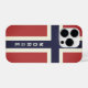 Cool Norwegian flag custom iPhone 14 pro case. Scandinavian pride. Personalise with your own text or monogram.