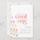 One cool girl is turning one! Celebrate your little girls big day in style with our colourful retro chequered happy face birthday invitation, featuring wavy pastel checkers and a totally stellar happy face.