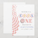 Cool One Girl's First Birthday Chequered Retro Invitation