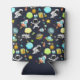 Can cooler with a cute and colourful pattern with all kinds of outer space themed elements. Images include astronauts floating around in their white space suits. Stars and planets and cool little rocket ships, spaceships, and satellites. Fun and crazy design.