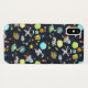 A phone case with a cute and colourful pattern with all kinds of outer space themed elements. Images include astronauts floating around in their white space suits. Stars and planets and cool little rocket ships, spaceships, and satellites. Fun and crazy design.