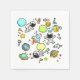 Paper napkins with a cute and colourful pattern with all kinds of outer space themed elements. Images include astronauts floating around in their white space suits. Stars and planets and cool little rocket ships, spaceships, and satellites. Fun and crazy design.