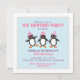 A pretty little trio of penguins ice skate on a tiny pond against a snowy background of icy blue, inviting your guests to a fun ice skating themed birthday party. With cute woollen hats in pink and purple, this design is perfect for any birthday girl!
