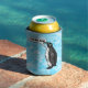 Keep your beverage cans cool & your hands warm all the while Chilly the Penguin keeps you amused. Design features our black & white (of course!) penguin standing aside a talk balloon w/ customisable text fields for your name or caption (default "Chill Out, Dude!" on front; "I'm cool with it!" on back). Background is a blue aqua marbled pattern.