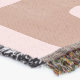 A quality printed throw has its advantages. This is a much finer weave throw than its loopier cousins, and though lighter, it is worth the investment for custom room accessorizing. The back is much prettier than the typical brown, and the fringe on the long sides very vivid, the selvage nicely done. Before photographing, I washed the throw in cold water, delicate, with a thicker woven throw the same size. On tumble dry low, this throw was dry in half the time as the other. This is a very practical quality if you use throws for furniture covers or to wrap up in frequently. The sleekness of the fabric makes it a great layer for accenting or protecting without the feeling of sitting on too much stuff. Perfect for napping or when you feel a light chill coming on. The color printing is beautiful and on this fabric, matched the design and color of my Photoshop image. This is an advantage for blending room fabrics and colors. The fringe on the short sides prints the colors from the design image and therefore varies from the side fringe. I streaked a white fractal line through the plaid pattern to give the illusion of weaving. This printed as crisp as an illusory thread, and put some white in the short side fringe, showing another advantage of print vs loomed- for artistic purposes, line lines, detail, and color integrity can be planned and preserved. My loomed throws have color limitations and more of a needlepoint texture. Print throws reproduce an exact image. The throw felt a little stiff straight out of the package, but this went away in the first delicate wash. Of course I searched the wash water for ink or bleeding and there was none.