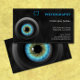 © Sunny Mars Designs. Blue Eye Camera Lens Photographer Business Cards - Cool, unique, mod black and blue photographer business card with camera lens of a blue iris eye as the diaphragm shutter. This modern, stylish card template is fully customisable.