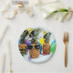 Colourful Pineapples with Party Hats and Balloons. One pineapple is wearing cool sunglasses.