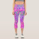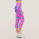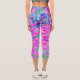 Cool Pink Blue and Purple Artsy Dahlia Bloom Capri Leggings