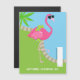Personalised summer magnetic greetings card featuring a whimsical pink flamingo wearing sunglasses.