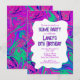 My daughter and I created this cool swirl design in bright teal, purple, blue and pink. We added some faux glitter sparkle effect. It creates the perfect backdrop for your amazing slime party birthday party. "You're invited to a Slime Party" is written in fun script. Add the birthday child's name in trendy typography. Easily customise the text and add the birthday party date, location, RSVP and other details. This budget invitation has a wavy rainbow, groovy appearance. The spiral design creates a great vibe. I hope you have a fabulous party starting with this unique original design. See my collection for other party products with this design.