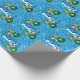 Perfect Gift Wrap if you are going to a Pool Party! Design features a blue water swimming pool background, decorated with red and white inflatable rings, tropical palm leaves and folage, a yellow exotic flower and the fun text 'POOL PARTY'.