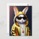 Cute cool with humanoid white bunny rabbit wearing a golden yellow hoodie, neck chain and dark sunglasses.