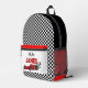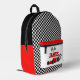 This Cool Race Car Theme Kid's Back to school Backpack Featuring a Red Formula Car and Flag Race Icon on a Black and White Chequered Background. Perfect Gift for Race Cars Loves. Easy to Personalise for an Awesome Gift for Birthday, Christmas, Holidays or any Special Occasion! Need help? or more matching products please feel free to send us a message about it in the chat option.