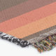 A quality printed throw has its advantages. This is a much finer weave throw than its loopier cousins, and though lighter, it is worth the investment for custom room accessorizing. The back is much prettier than the typical brown, and the fringe on the long sides very vivid, the selvage nicely done. Before photographing, I washed the throw in cold water, delicate, with a thicker woven throw the same size. On tumble dry low, this throw was dry in half the time as the other. This is a very practical quality if you use throws for furniture covers or to wrap up in frequently. The sleekness of the fabric makes it a great layer for accenting or protecting without the feeling of sitting on too much stuff. Perfect for napping or when you feel a light chill coming on. The color printing is beautiful and on this fabric, matched the design and color of my Photoshop image. This is an advantage for blending room fabrics and colors. The fringe on the short sides prints the colors from the design image and therefore varies from the side fringe. I streaked a white fractal line through the plaid pattern to give the illusion of weaving. This printed as crisp as an illusory thread, and put some white in the short side fringe, showing another advantage of print vs loomed- for artistic purposes, line lines, detail, and color integrity can be planned and preserved. My loomed throws have color limitations and more of a needlepoint texture. Print throws reproduce an exact image. The throw felt a little stiff straight out of the package, but this went away in the first delicate wash. Of course I searched the wash water for ink or bleeding and there was none.