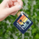 Cool Retro Beach House Custom Navy Blue Key Ring