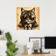 This retro-style art shows a black line drawing on sepia of a cat wearing aviator sunglasses and in a businessman, detective, policeman, or spy suit.