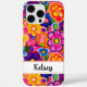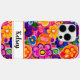 Make a retro statement with this groovy 70s inspired hippie flower power floral iphone 16 pro max phone case! It's modern and trendy with bright multi-colored painted flowers. Make it uniquely yours with your name in a modern script font in black. It will look fabulous on your phone!