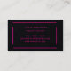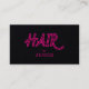 For hair stylists and colorists, a minimalist business card shown with the black card stock, with cool, retro typography featuring "HAIR" in pink and black. Reverse side has your basic information in a pink retro font with ability to add or delete text lines of your preference, surrounded by an edgy pink border. Great for freelance and independent artists. Message me if formatting assistance needed!