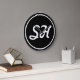 Cool Retro-Modern Style Monogram | Black & White Large Clock