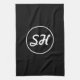 Cool Retro-Modern Style Monogram | Black & White Tea Towel