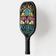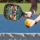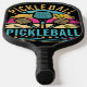 Amazing fun cute colourful retro pickleball paddles and net and balls abstract art pickleball paddle design is popular with pickleball players.