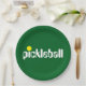 Cool Retro PICKLEBALL Text Bold Green Background Paper Plate