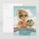 A stylish young girl and her fluffy dog enjoy a sunny road trip, both wearing sunglasses, exuding confidence and joy.