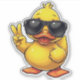 This sticker features one cool rubber duckie, flashing the peace sign white wearing his shades!