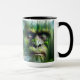 An illustration of Bigfoot in a cool double exposure with forest, river and mountains. Cool Sasquatch themed coffee cup.