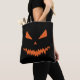 Halloween pumpkin all over print tote bag with Cool and scary Jack O'Lantern face Halloween.