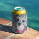 Cool Schnauzer Can Cooler too keep your beverages cool - great gift for Girlfriends, Best Friends, family members or for yourself! Grey or Grey Schnauzer Puppy has been painted in watercolors by the designer. Sparkling Black Eyes and a Red Scarf will warm your heart
