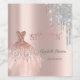 Elegant rose gold dress and silver glitter drips on a rose gold background.